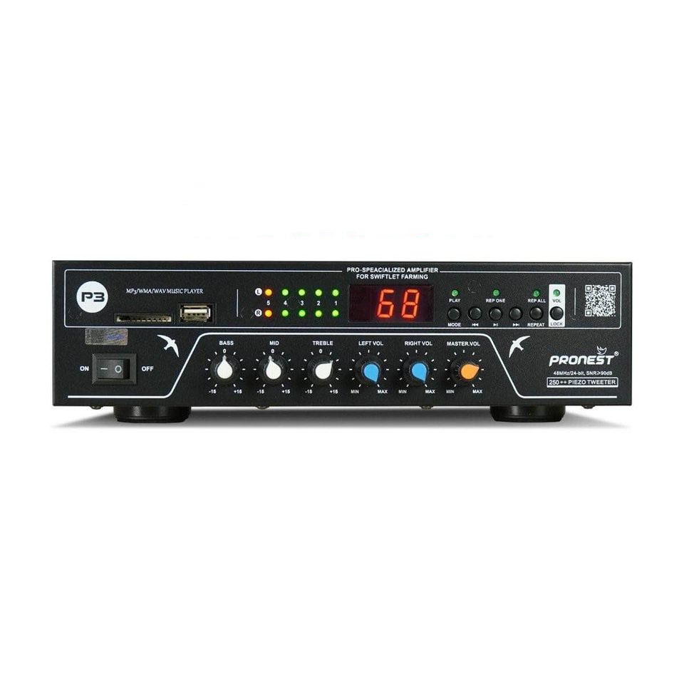 Công dụng: Amply Pronest P3 là dòng Amply chuyên dụng được sử dụng dành riêng cho nhà dẫn dụ chim yến, có công suất tải lên đến 250 loa ru và có thể hoạt động 24/24 xuyên suốt cả quá trình dẫn dụ chim yến. Sản phẩm được tích hợp công nghệ tiên tiến cho âm thanh phát ra trung thực phù hợp với tần số âm thanh của chim yến và phát hiện hệ thống loa chập mạch hiện đại nhất hiện nay. Với nhiều tính năng kỹ thuật phù hợp với thực tế khi sử dụng trong việc dẫn dụ chim yến.